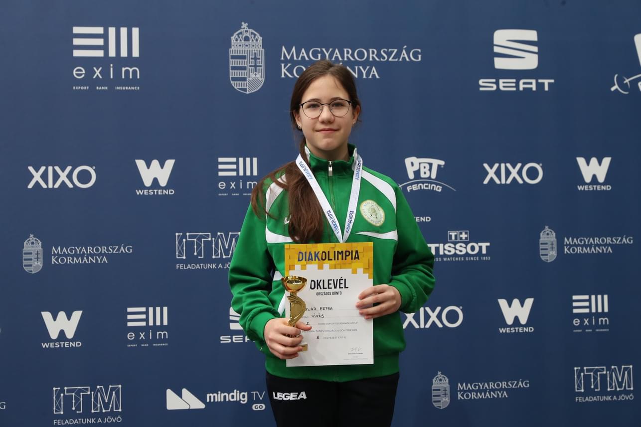 Az Országos Bajnokságon négy közé jutott női kardcsapatunk vezére ezúttal is magabiztosan jutott a nyolcas döntőbe. Szorgalmas edzésfeladatainak teljesítése reménykeltő céljainak eléréséhez. Csapattársai a KVSE-ben még serdülő korúak, ugyan a kadet válogatón mindketten a döntőben szerepeltek.